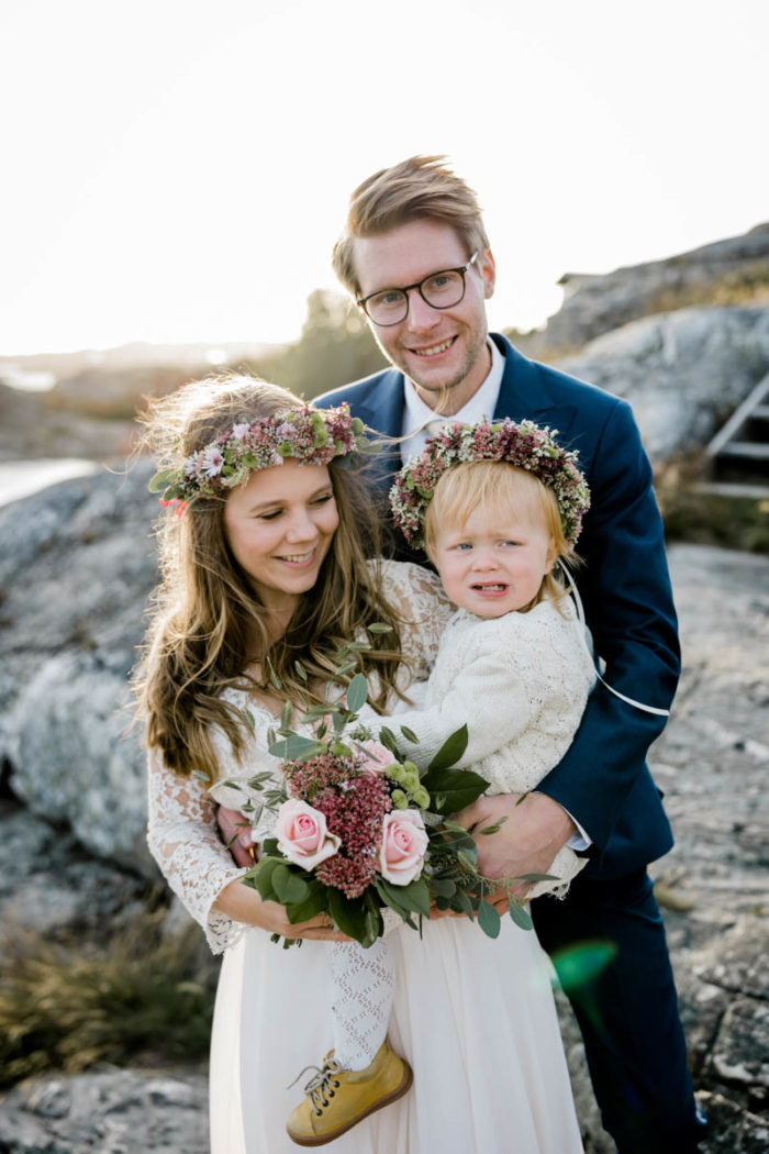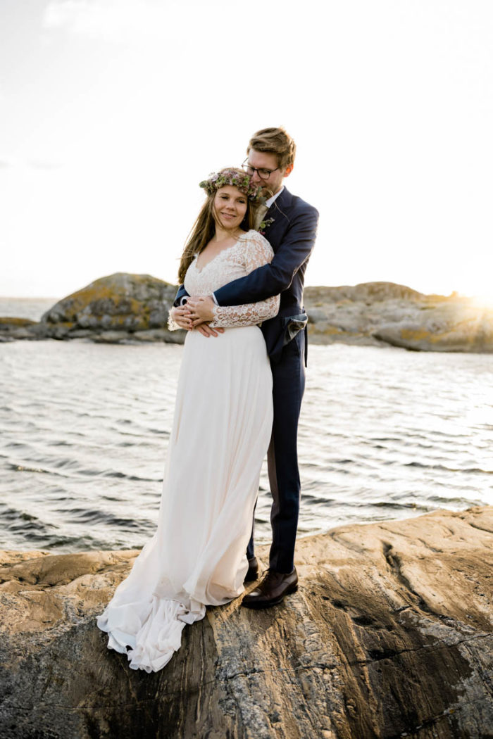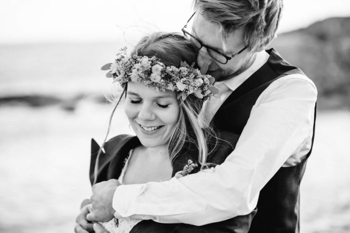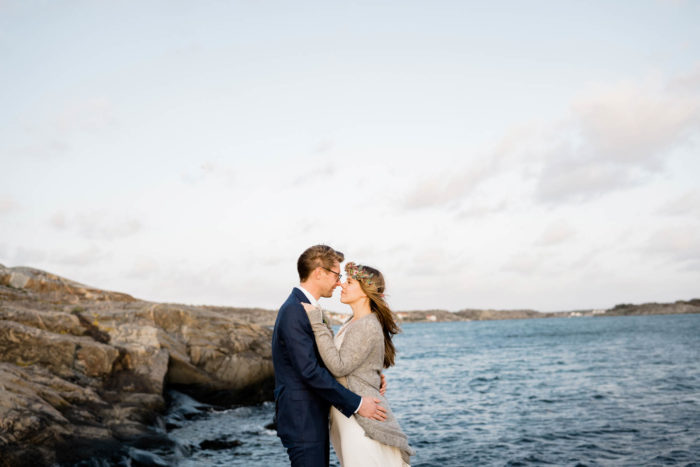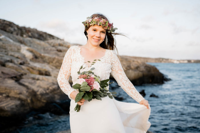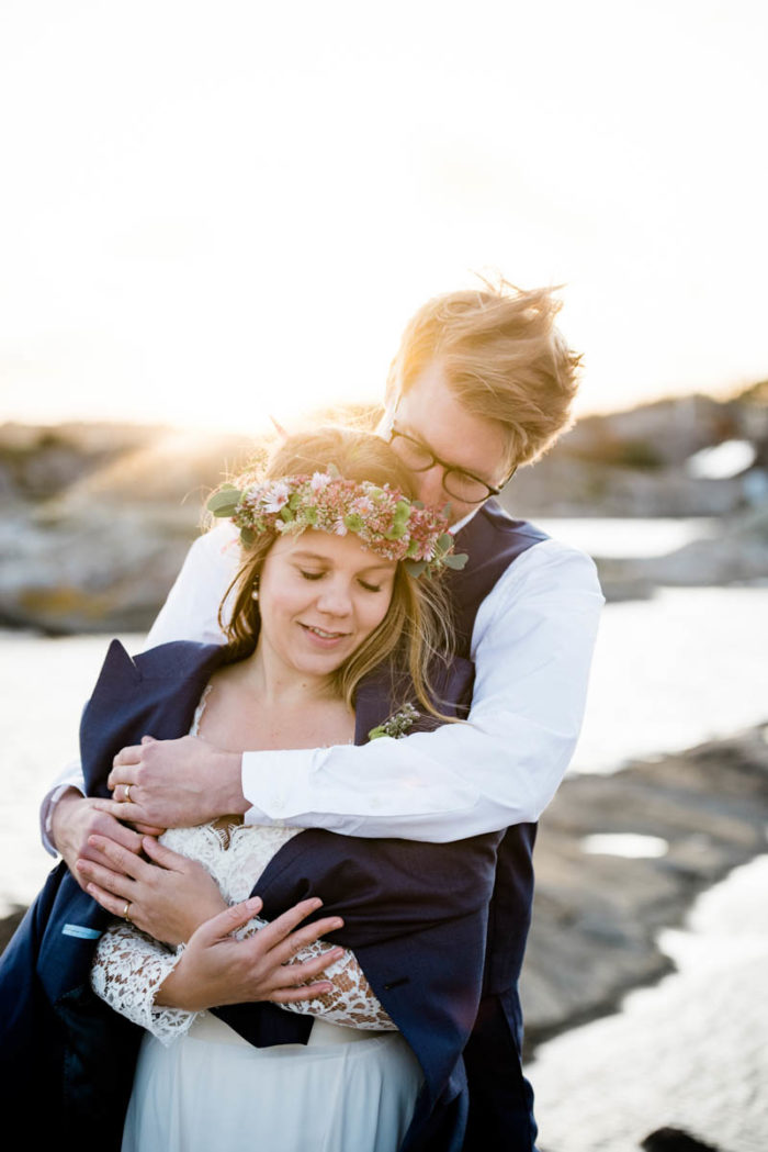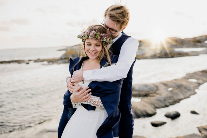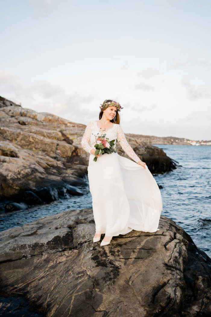 Nach der wundervollen Hochzeit am Samstag, haben wir uns mit der kleinen Familie noch einmal am Montag getroffen, um einen der unglaublichen Sonnenuntergänge an Schwedens Felsenküste mitzunehmen. Es war eine fantastische Atmosphäre und perfekt für ein After Wedding. So ein schöner Anlass, noch mal ins Kleid zu schlüpfen und mit Blumenkranz am Meer zu shooten!