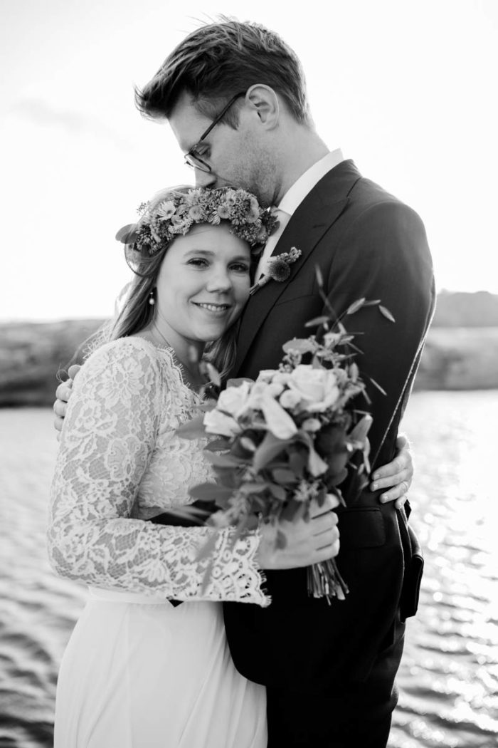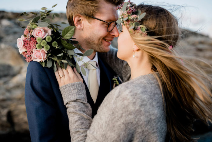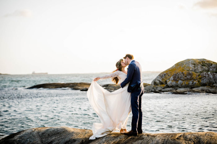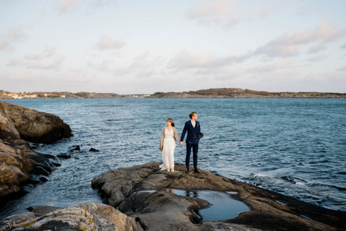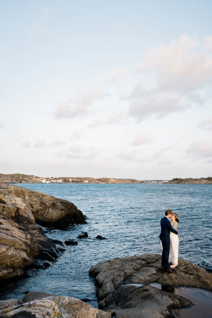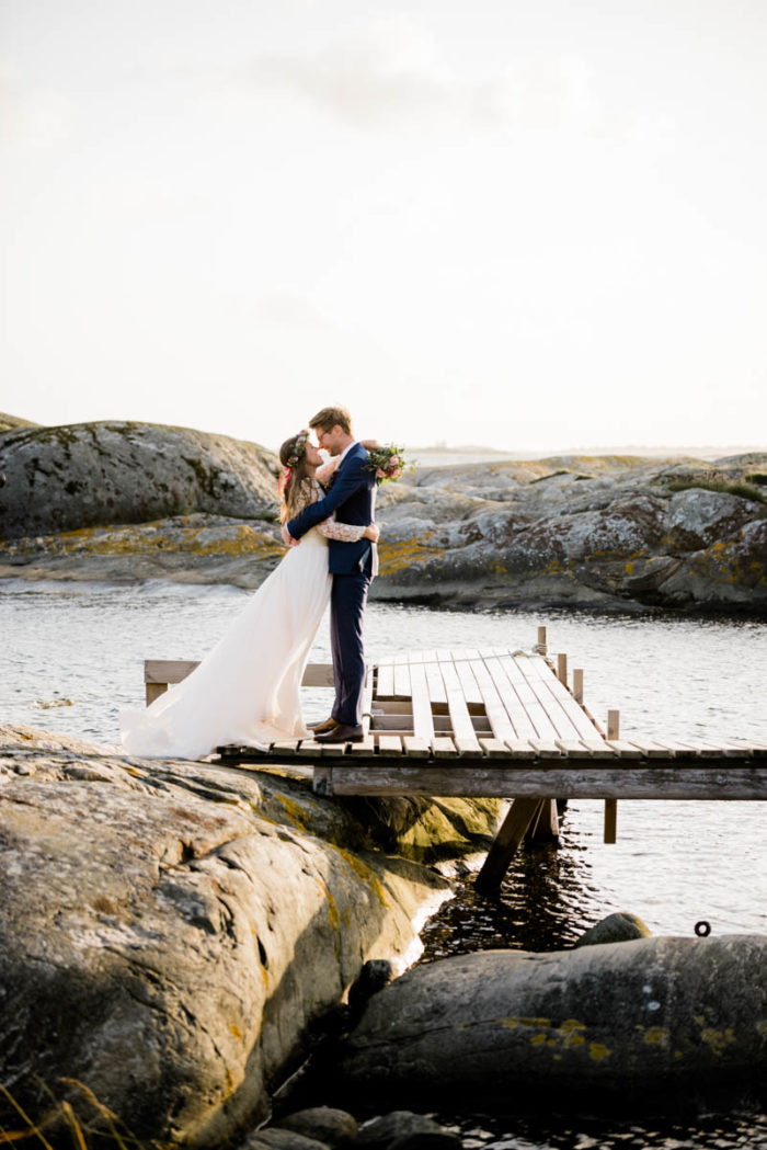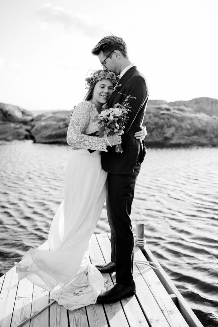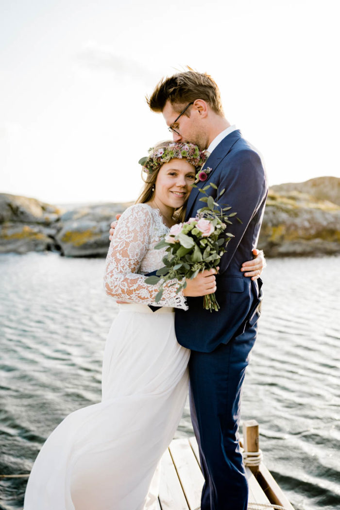 Nach der wundervollen Hochzeit am Samstag, haben wir uns mit der kleinen Familie noch einmal am Montag getroffen, um einen der unglaublichen Sonnenuntergänge an Schwedens Felsenküste mitzunehmen. Es war eine fantastische Atmosphäre und perfekt für ein After Wedding. So ein schöner Anlass, noch mal ins Kleid zu schlüpfen und mit Blumenkranz am Meer zu shooten!
