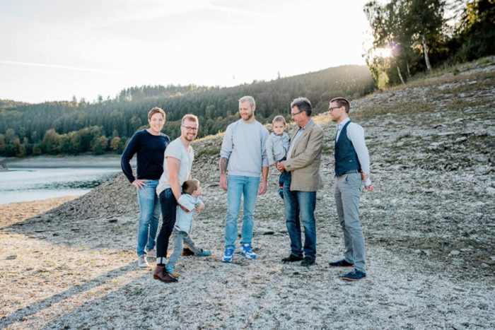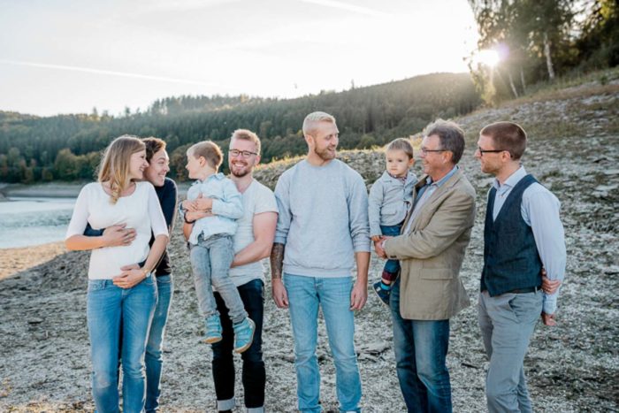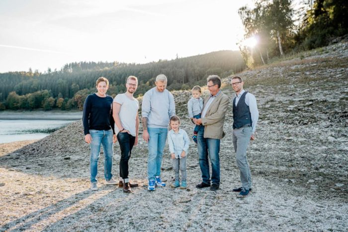 So hat Katharina sich ein Herz gefasst und einen Termin organisiert, wo alle drei Generationen und der Hund Zeit hatten. Aus allen Richtungen fuhren sie ins Sauerland, um hier einen wundervollen und sonnigen Tag zu verbringen. Denn sie haben nicht nur die Bilder für sich bekommen, sondern auch ein unvergesslichen Tag geschaffen. Alle waren sie zusammen – spazieren gehen an einem leeren Stausee – gemeinsam Essen, lachen und sich darauf besinnen, was man aneinander hat.