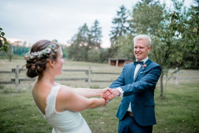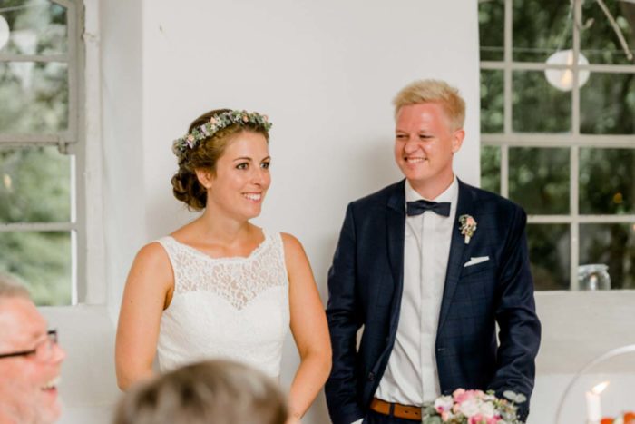 Für mich ganz besonders war die Stimmung der Beiden. Denn auch wenn man jedem Brautpaar vorher erzählt, wie wichtig es ist, entspannt zu sein, schafft das auch nicht jeder. Doch Eva und Christian haben an dem Tag mit der Sonne um die Wette gelächelt und am Ende gewonnen. Ihr gute Laune und die postive Ausstrahlung färbte auf alle Gäste ab.