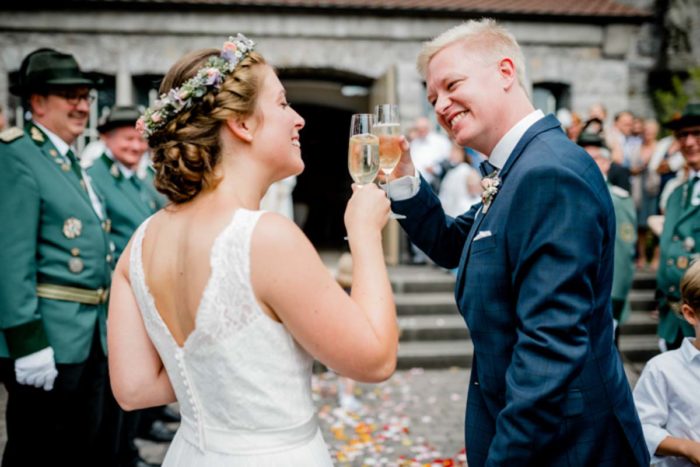 Direkt vor Meschede, unserer Wahlheimat hier im Sauerland, liegt ein altes Gut. Ein wunderbarer Ort, um eure Hochzeit so richtig ausgelassen zu feiern. Eine helle Location mit einem zauberhaften kleinen Garten und einem fantastischen Hof für euren Sektempfang und die Gruppenbilder! Eva und Christian haben ihre Hochzeit auf Gut Stockhausen gefeiert, da es wunderbar zu ihrer Vintagehochzeit passt. Die liebevolle Deko, die die beiden selbst gemacht haben, die zauberhaften Blumen, ihre Outfitwahl und die verspielte Papeterie, die von Eva´s Bruder gestaltet wurde, trugen zu einem herrlich leichten und harmonischen Gesamtlook bei.